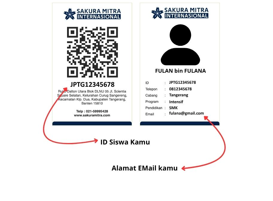ID Siswa adalah kode unik 12 digit dengan kombinasi 4 huruf dan 8 nomor. Contoh formatnya adalah JPTG12345678.